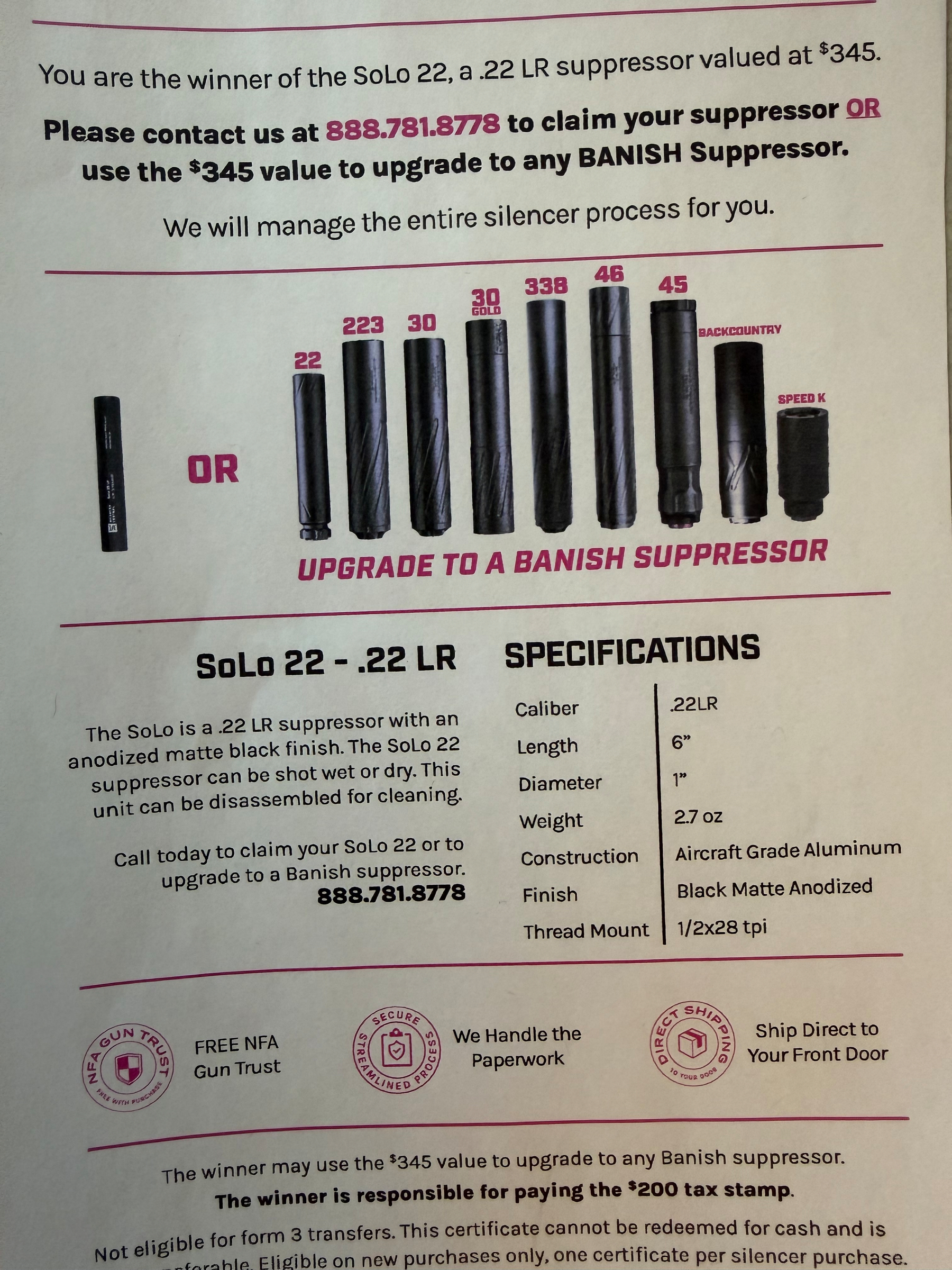 Kicking off the new year by winning a free suppressor. Nice. The $200 tax stamp is not required as of January 1st but the same NFA approval process with FBI and ATF is still required.