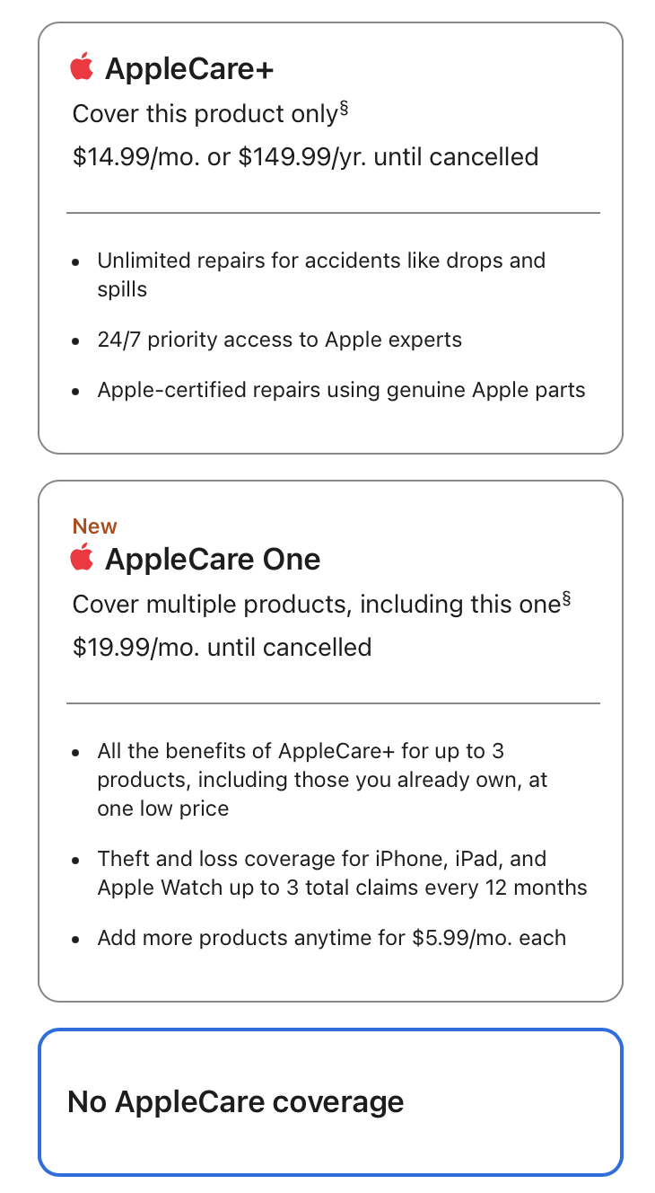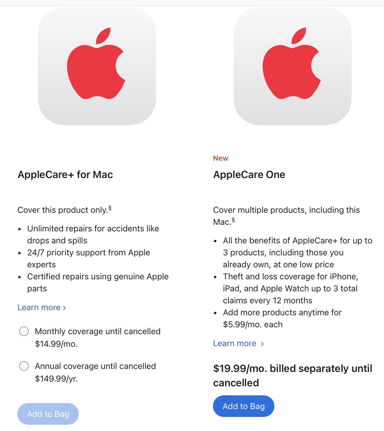 What’s the hack to getting 3 year apple care coverage for Mac? Can you still attach it if you call them up within 60 days? You can no longer attach at time of purchase online or via settings. $149 a year is $450 over 3 years. It used to be $339 for 3 years.