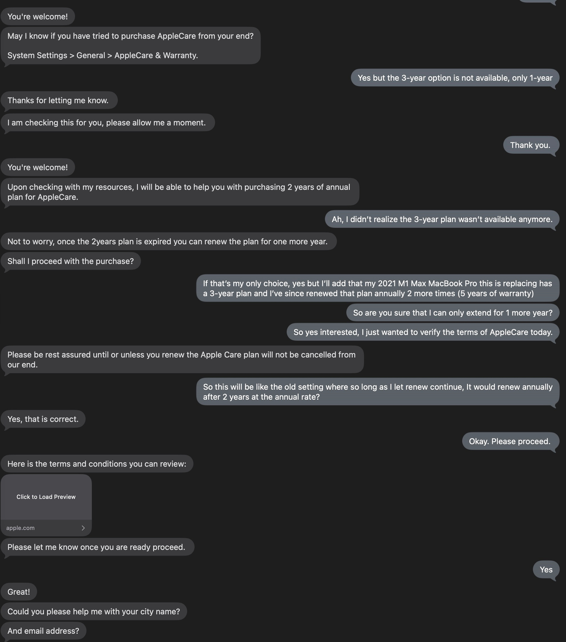 Sharing the AppleCare Support Team’s message. I have an M5 MBP but I assume this is ‘normal’ now that 3-year Macintosh plans are indeed dead and the 2 year costs more than 3-year.